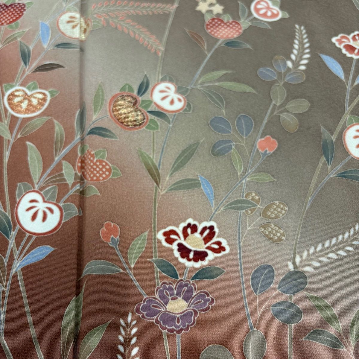 訪問着 身丈156.5 cm 裄丈62 S 袷 橘 草花 金糸 染め分け 茶色 正絹 秀品