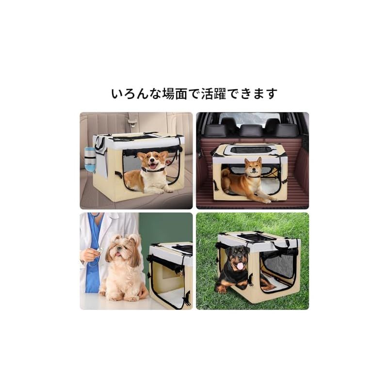 商品名:Stefanie 犬用クレート 中大型犬 キャリークレート 犬 猫 ソフトクレート キャリーバッグ 折りたたみペットケージ 給水ボトルバンド付き 洗濯可能 20kgまで『災害、室内ハウス、アウトドア、宿泊、キャンプに大活躍! 』 (XL, ベージュ)