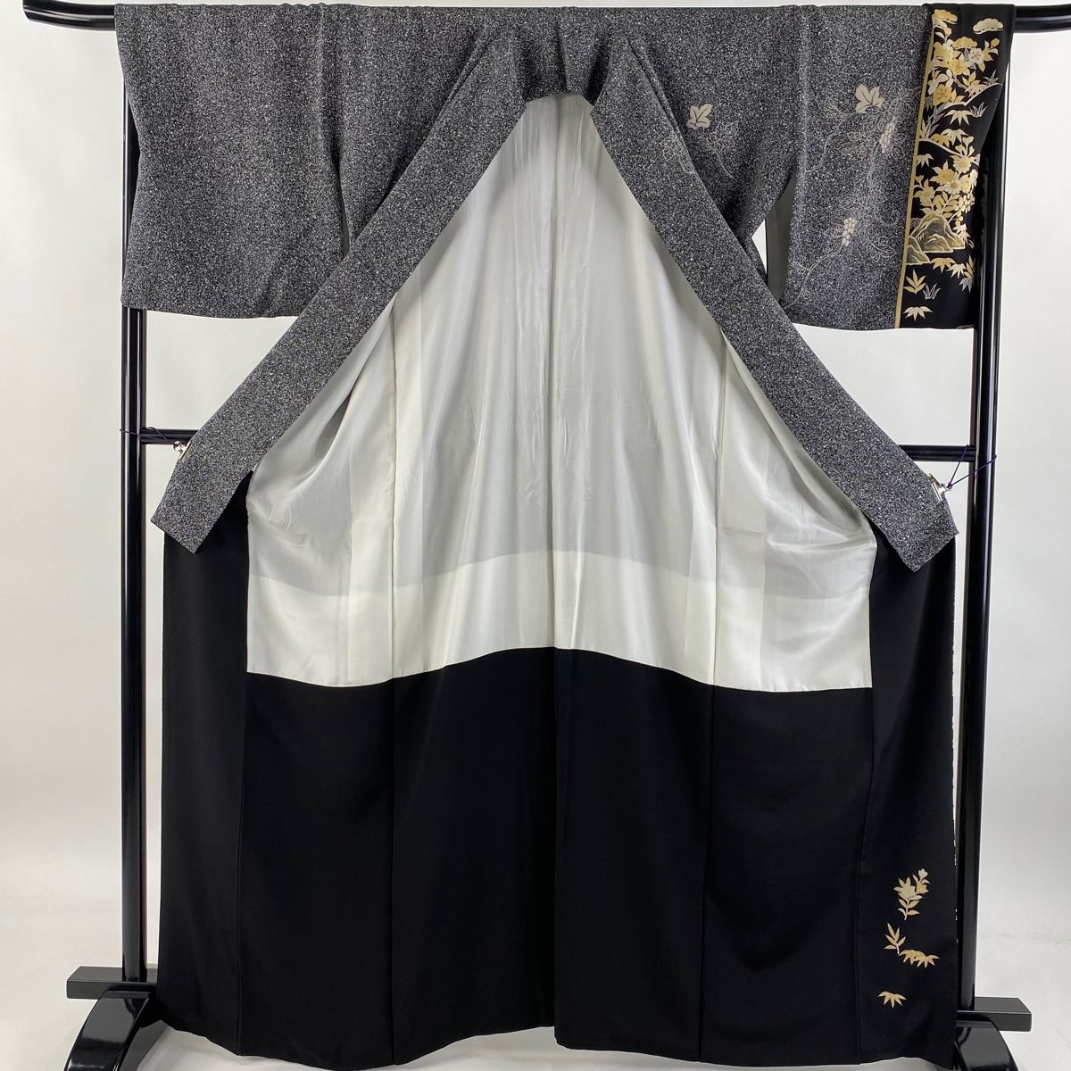 訪問着 身丈165 cm 裄丈70 L 袷 落款 葡萄 草花 金彩 黒灰 正絹 秀品