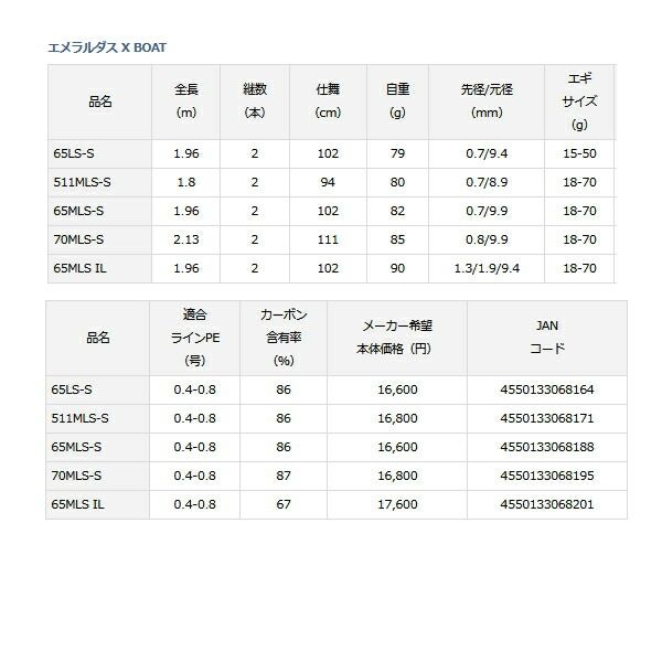 ≪ 21年 新商品 ≫ ダイワ エメラルダス X ボート 65 LS S 〔仕舞寸法 102 cm〕