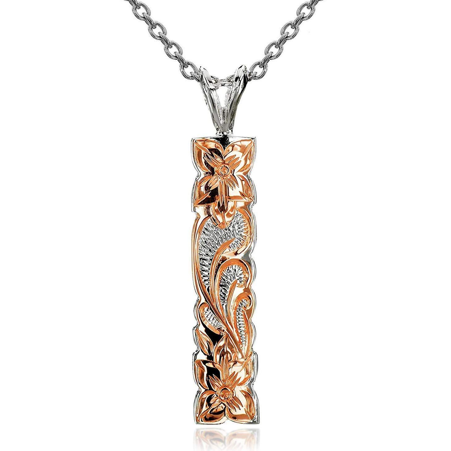 Style チェーン付 レイラニ ハワイアンジュエリー プレート カットアウト プルメリア&スクロール 波 彫り ペンダント ネックレス シルバー 925 ピンクゴールドコーティング