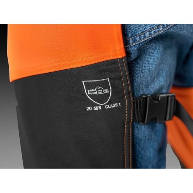 ハスクバーナチャップスファンクショナルは、不定期なチェンソーの作業をあらゆる天候条件で行うために設計された、快適な保護用チャップスです。作業ズボンの上に簡単に装着できます。ウエストと脚のフィット感はストラップとバックルで簡単に調節でき、ふくらはぎには面ファスナーも付いています。膝と足首にあるCordura(R)補強材は耐久性を向上させ、反射材を使ったロゴがあるハイビズオレンジの前部は、視認性を高めています。ENISO11393クラス1(20m/s)に適合しています。