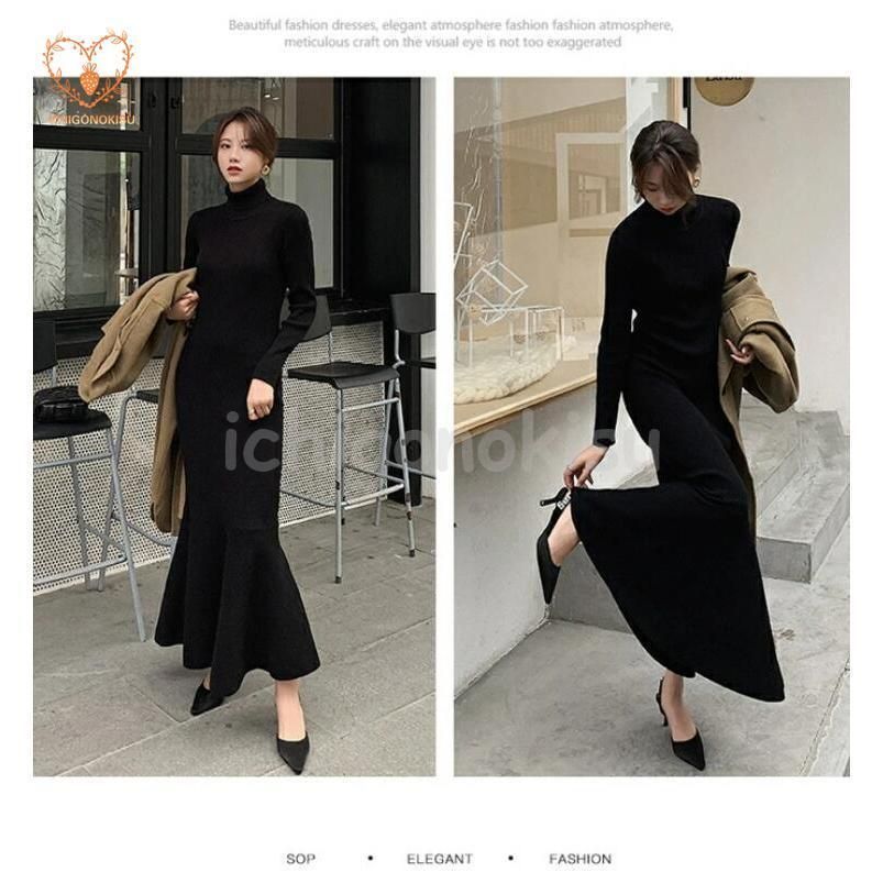 ニットワンピース ニット ワンピース マーメイド裾 レディース ロングワンピース きれいめ マキシワンピース 大きいサイズ ハイネック タイ