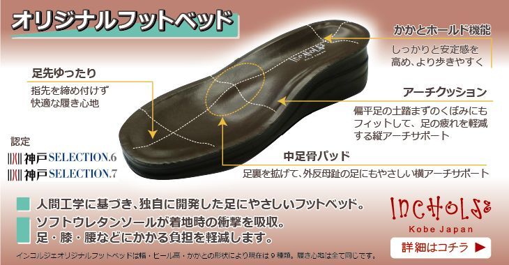 履き心地+デザインにこだわった神戸のオリジナルシューズブランド「インコルジェ」のメーカー直アウトレット商品です。(在庫限り)