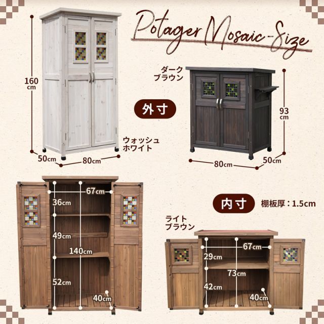 ガーデンガーデン 木製収納庫 物置 Potager ポタジェモザイク ロータイプ 高さ93 cm 幅80 奥行き50 PTG 8109
