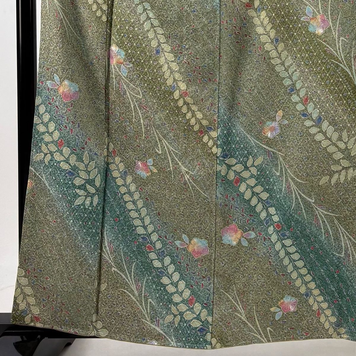 訪問着 身丈160.5 cm 裄丈66 M 袷 辻が花柄 金彩 ぼかし 抹茶色 正絹 秀品
