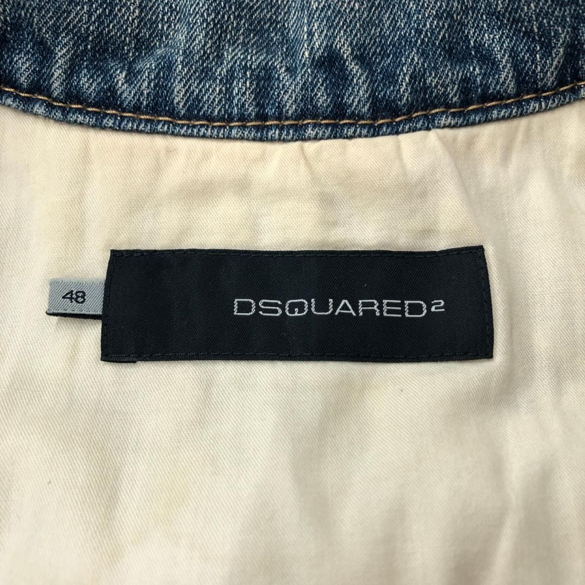 Dsquared 2 ディースクエアード レザー×デニム切替ダウンベスト サイズ 48 ブルー メンズ