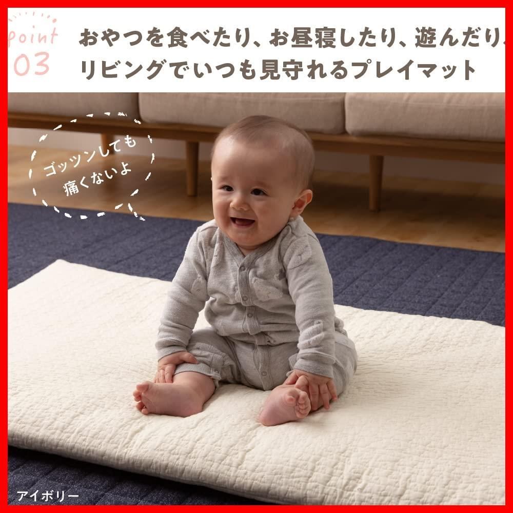 商品 ベビーマット ベビー布団 赤ちゃんマット イブル アイボリー mofua モフア 綿 cloud柄 アクア キルティング プレイマット 厚みしっかり お昼寝布団 ファスナー付き