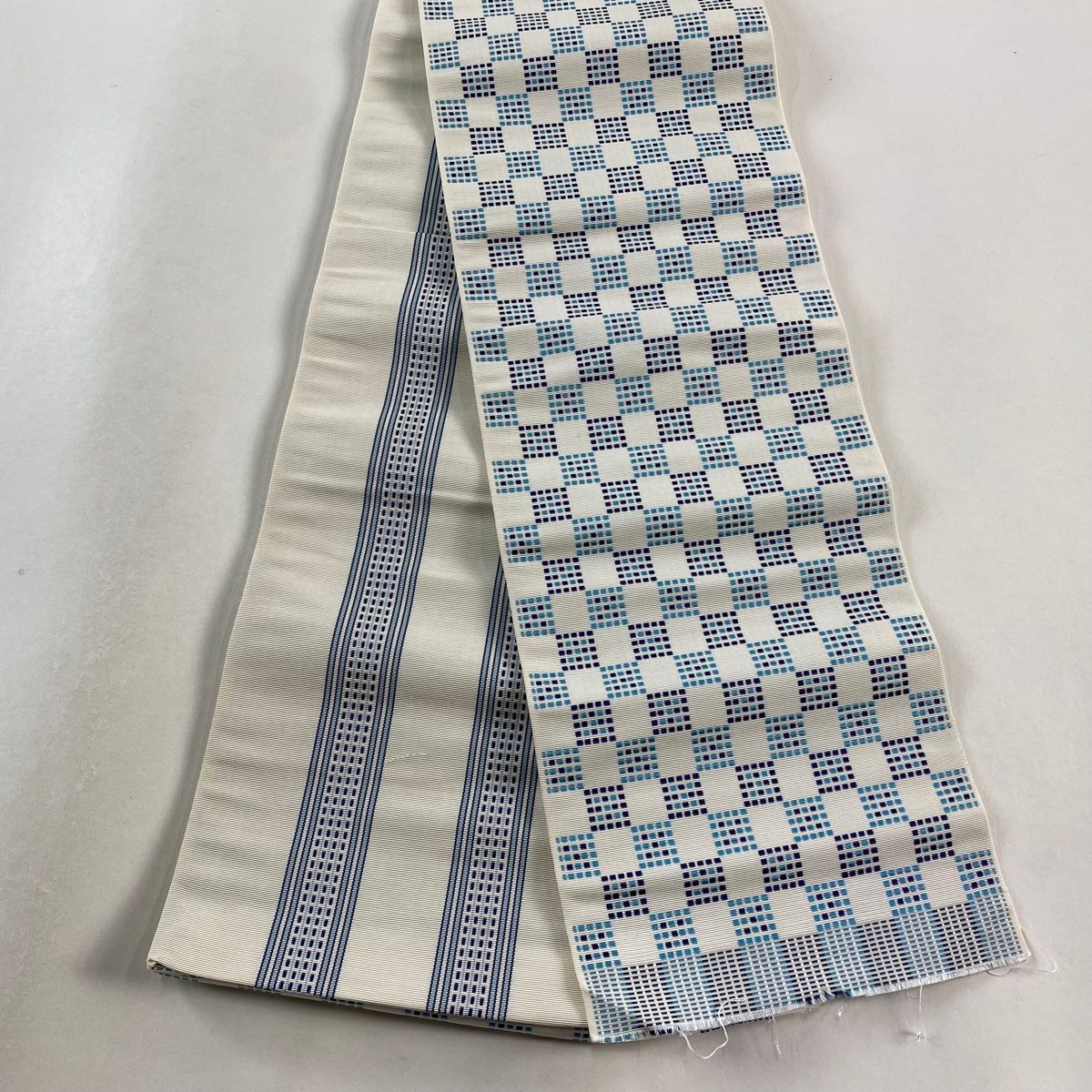 半幅帯 証紙 博多織 市松模様 白 正絹