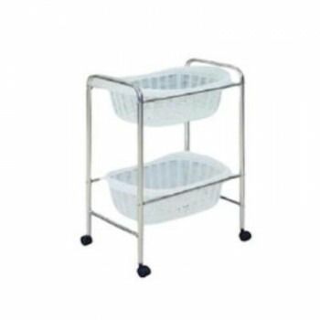 直径4cmの双輪キャスター付きです。衛生的なクロムメッキ加工仕上げです。衝撃強度に優れ水分や薬品にも強く丸洗い可能なプラスチックカゴです。
