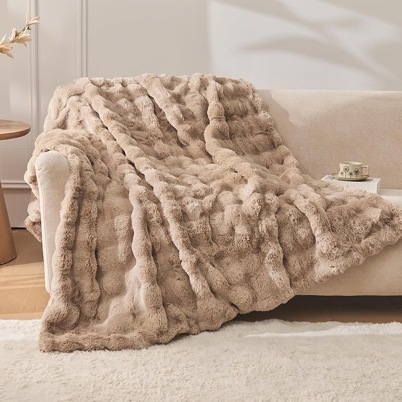 【おしゃれで高級感のあるデザイン】立体的なもこもこデザインが特徴で、インテリアのアクセントにもぴったり。シンプルながら高級感を兼ね備えたブランケットは、ご自宅用はもちろん、新築祝いやクリスマスプレゼントとしても喜ばれます。高精度な縫製と二重ロック縁仕様により、ほつれにくく長持ち。さらに静電気防止加工を施しており、冬場のパチッとした不快感やホコリの付着を軽減。日常使いに配慮した安心設計です。