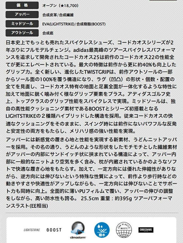 仕入品 68フットウェアホワイト ブラック adidas アディダス ゴルフシューズ MDV 41 コードカオス 25 EE相当 靴ひも式 スパイクレス メンズ