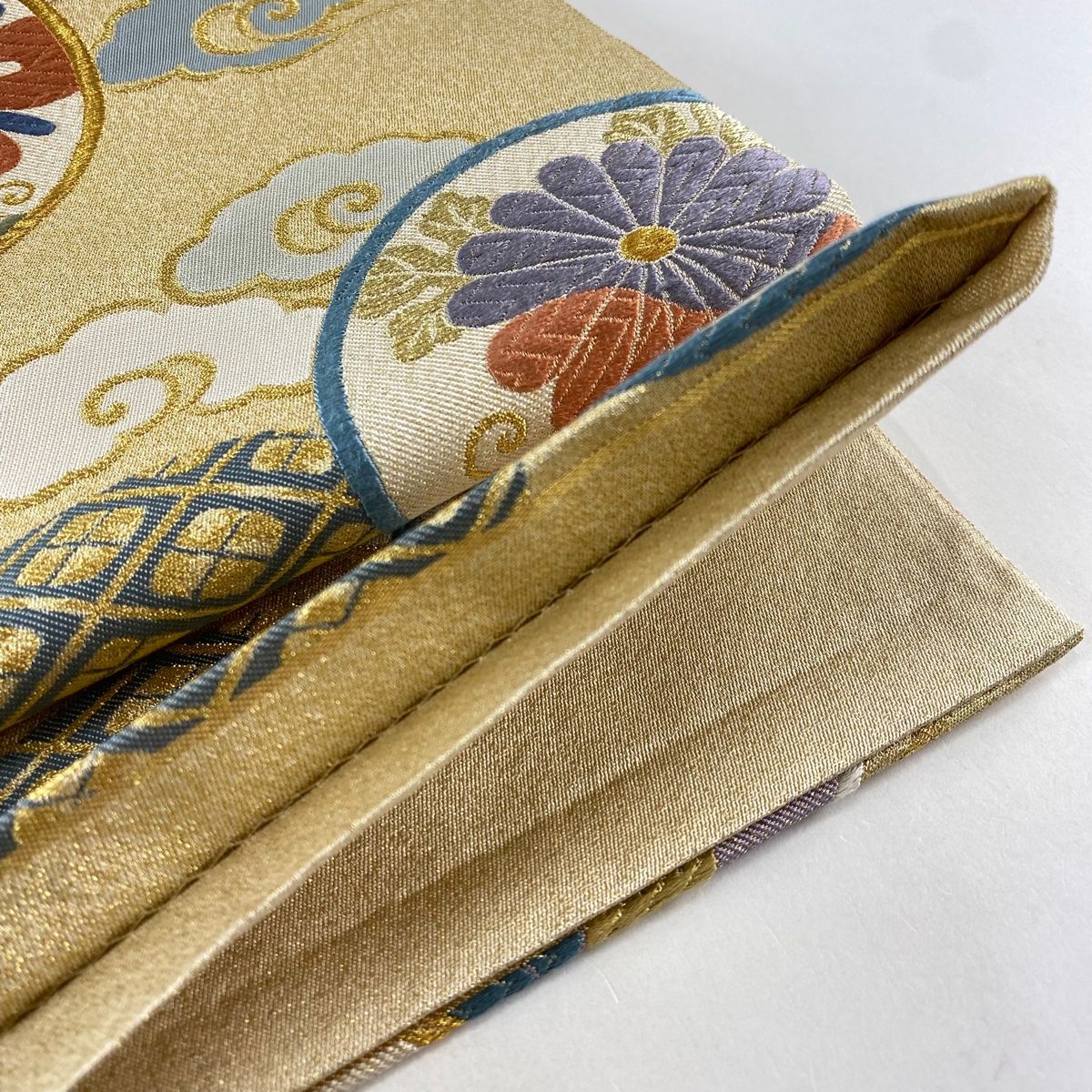 袋帯 秀品 丸文 花菱 金糸 箔 金色 六通 正絹