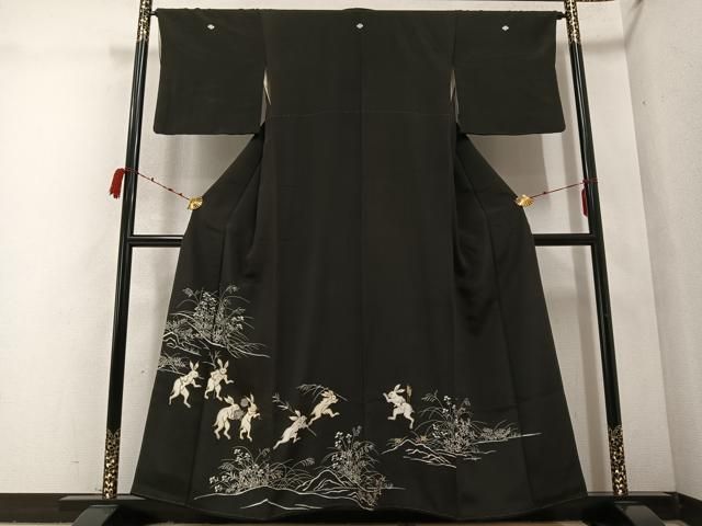 平和屋着物 豪華黒留袖 手描き 鳥獣戯画 兎 金糸 正絹 ph
