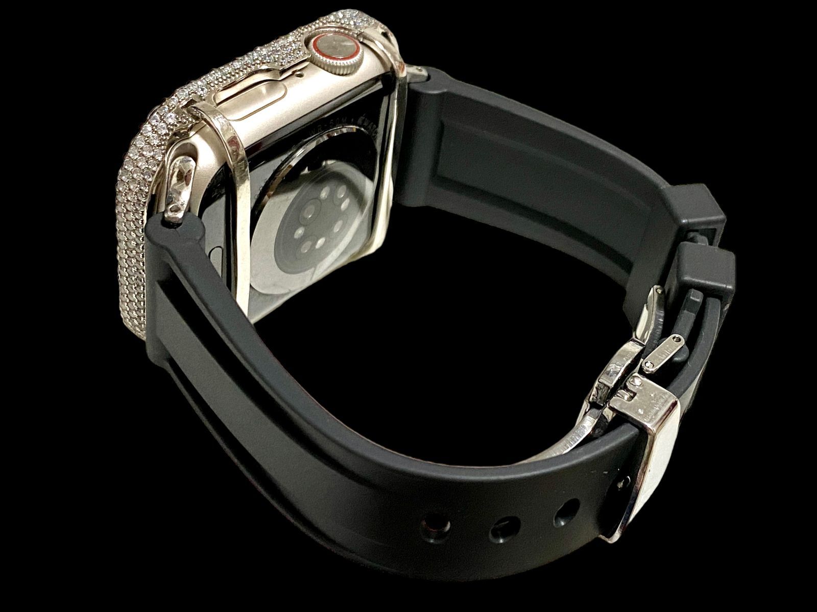 超 大粒シルバー×ブラック AppleWatchキラキラケース カバー アップルウォッチ ラバーバンド ベルト 38 mm 41 42 45