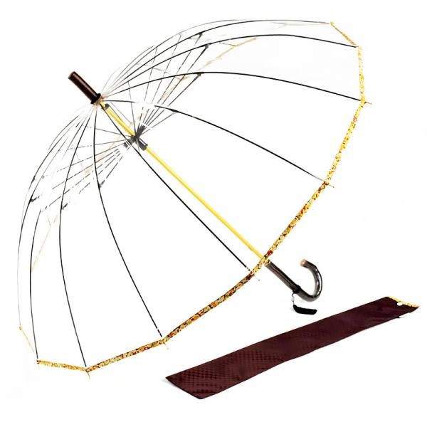 透明な生地に映えるイエローの小花柄は、どんな衣装にも映え、持つ人の個性を引き立てスタイルを際立たせる傘です。