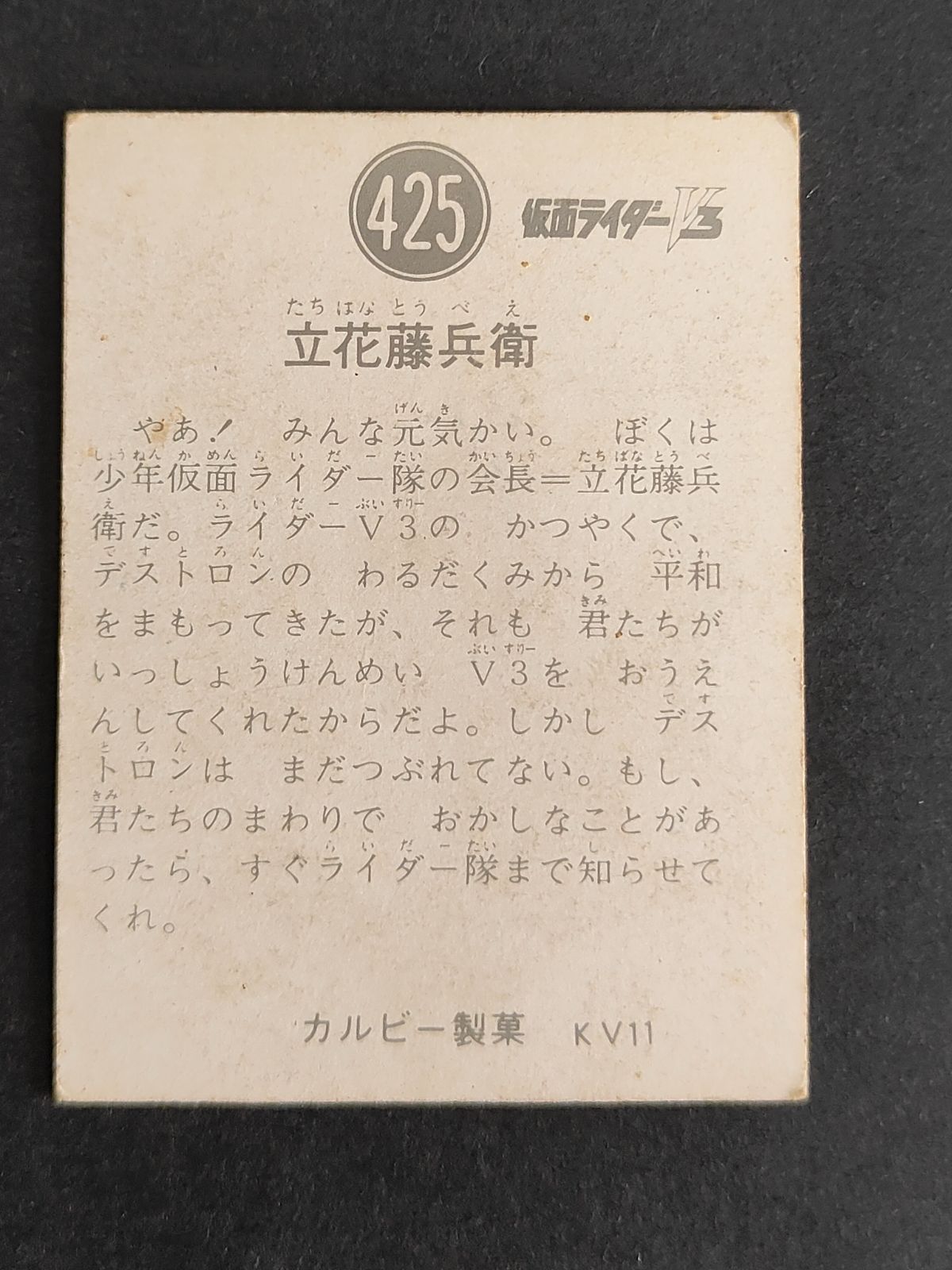 aca 408 旧仮面ライダー V 3 カード KV 11版 立花藤兵衛 425 Calbee カルビー 製菓
