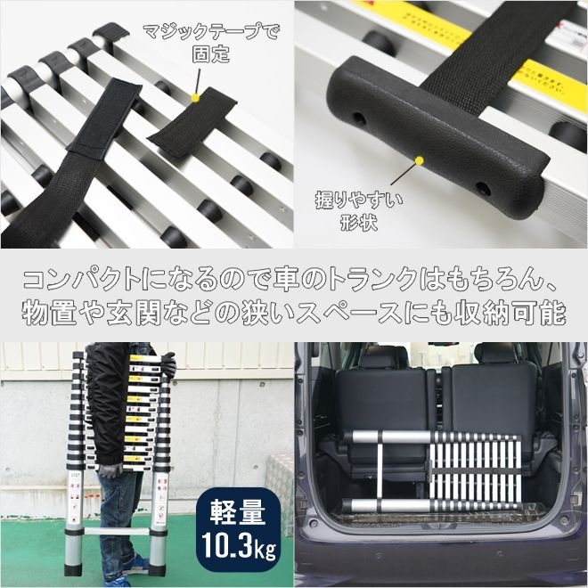 はしご 3 8 m 伸縮 アルミ ハシゴ 梯子 13段 150 kg 自動安全ロック 滑り止め付き 軽量 コンパクト スーパーラダー 踏み台 KIKAIYA