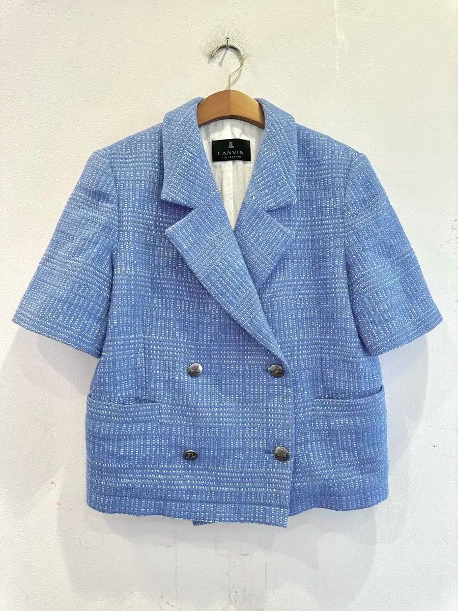 ランバンコレクション-ランバンコレクションの半袖ジャケットを販売しています。サイズは55から66までご用意しています。厚手で柔らかく、しなやかなジャケットです。状態は新品の服とほぼ同じくらいキレイです!バストの実寸は、総丈身長の順で 50~58cmです。