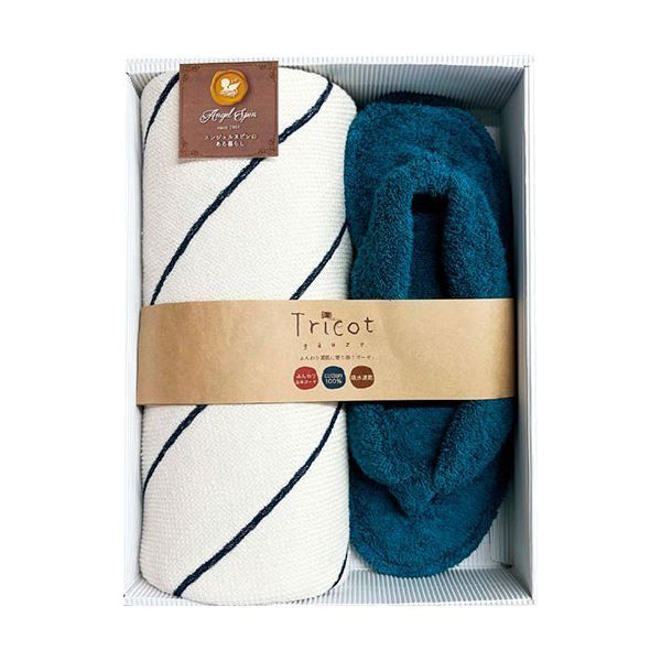 トリコットガーゼ トリコット バスタオル スリッパセット ネイビー バスタオル65 125 cm スリッパ26〜28