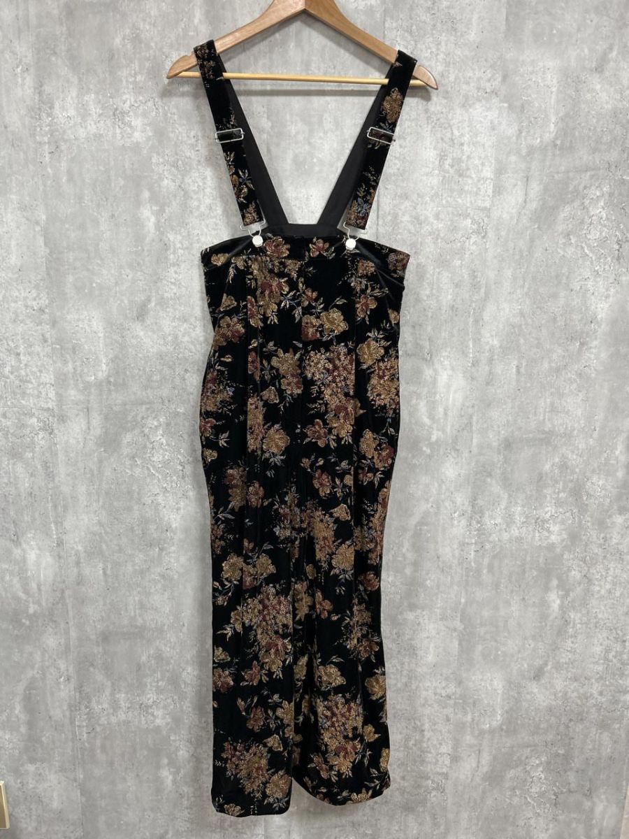 Ameri VINTAGE アメリヴィンテージ 総柄 ベロア フラワープリント サロペット オーバーオール sizeM 黒 レディース