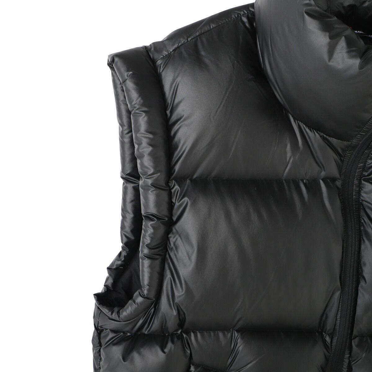 程良い光沢感が上品な印象のダウンベスト。 ゆとりのあるオーバーサイズフィットにブラックカラーのフェルトパッチがスタイリッシュなアイテムです。850フィルパワーフレンチダックダウンで充分な暖かさ。撥水性と通気性に優れており、ポケットの内部にはあたたかな起毛素材を使用した機能性の高さも自慢です。