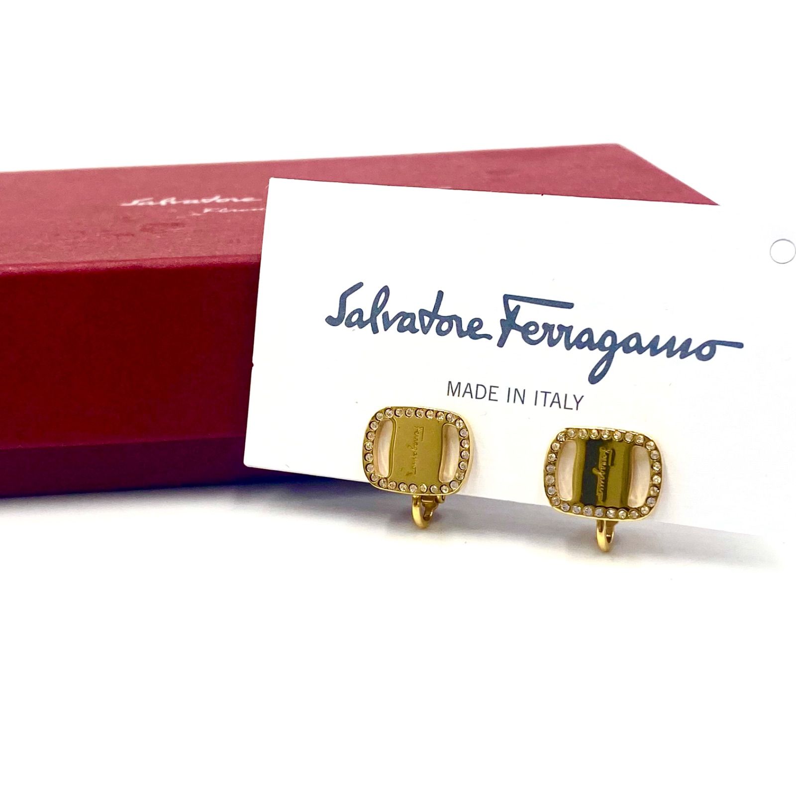 上 Salvatore Ferragamo サルヴァトーレフェラガモ イヤリング 両耳 ガンチーニ ゴールド ライトストーン