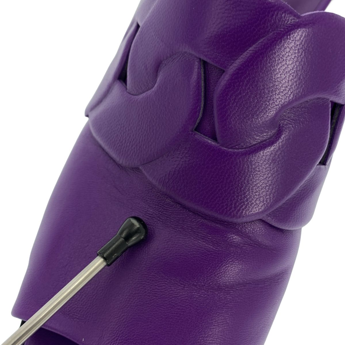 HERMES エルメス Hanna ハンナ レザー スクエアトゥ ヒール ミュール サンダル 37 1 2 パープル レディース