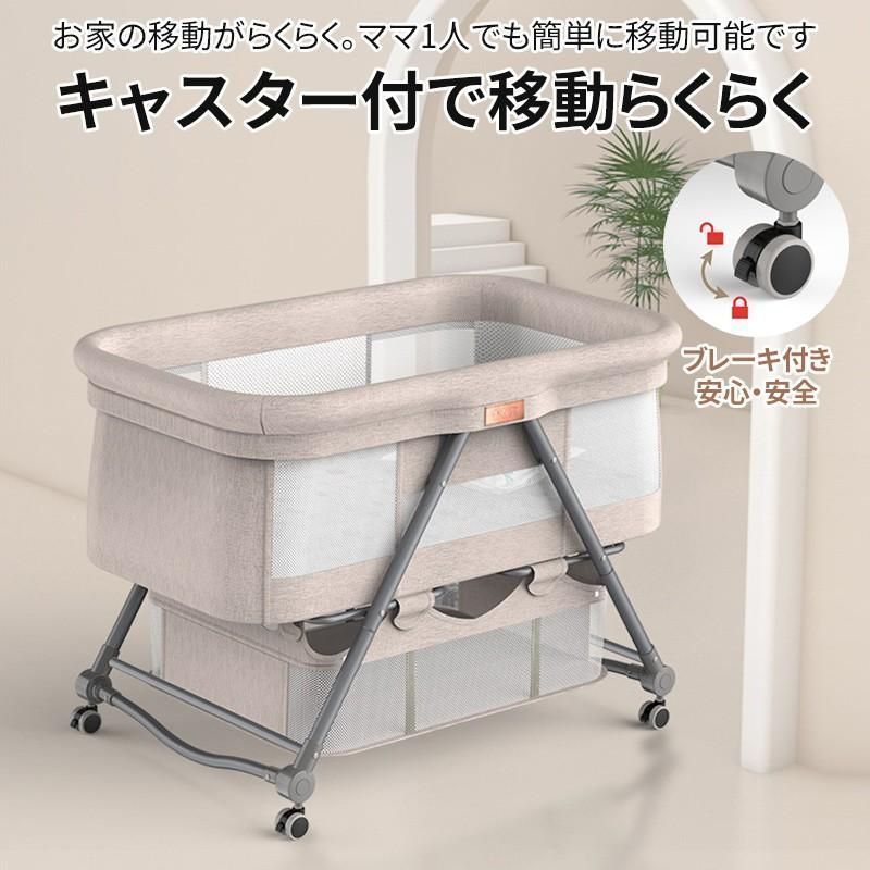 ベビーベッド 折りたたみ 添い寝ベッド 揺りかご 赤ちゃん 高さ調節 キャスター付き ストッパー付き 大容量 ハイローベッド 固定ベルト