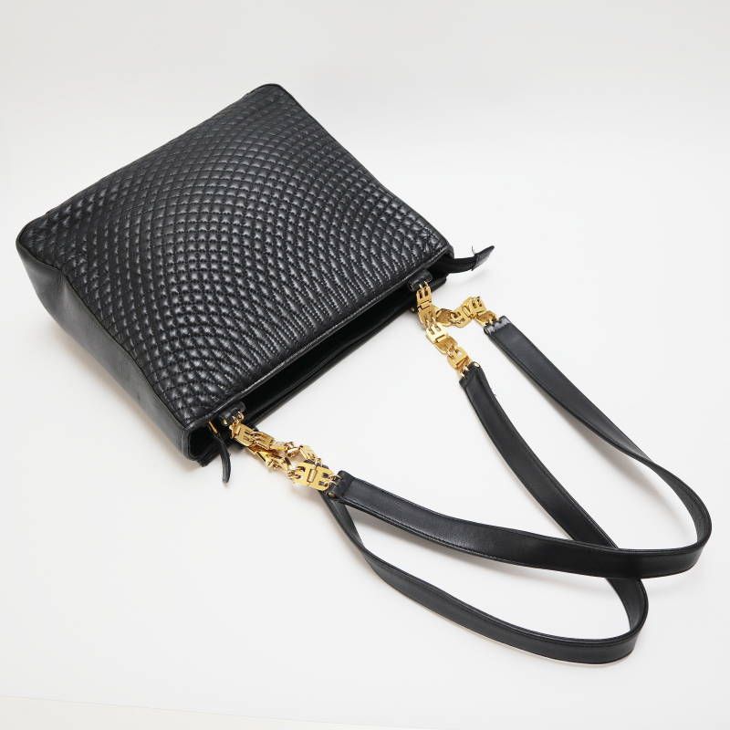BALLY バリー キルティング レザ― Bロゴチェーン ショルダーバッグ トートバッグ ブラック S 09-k 084