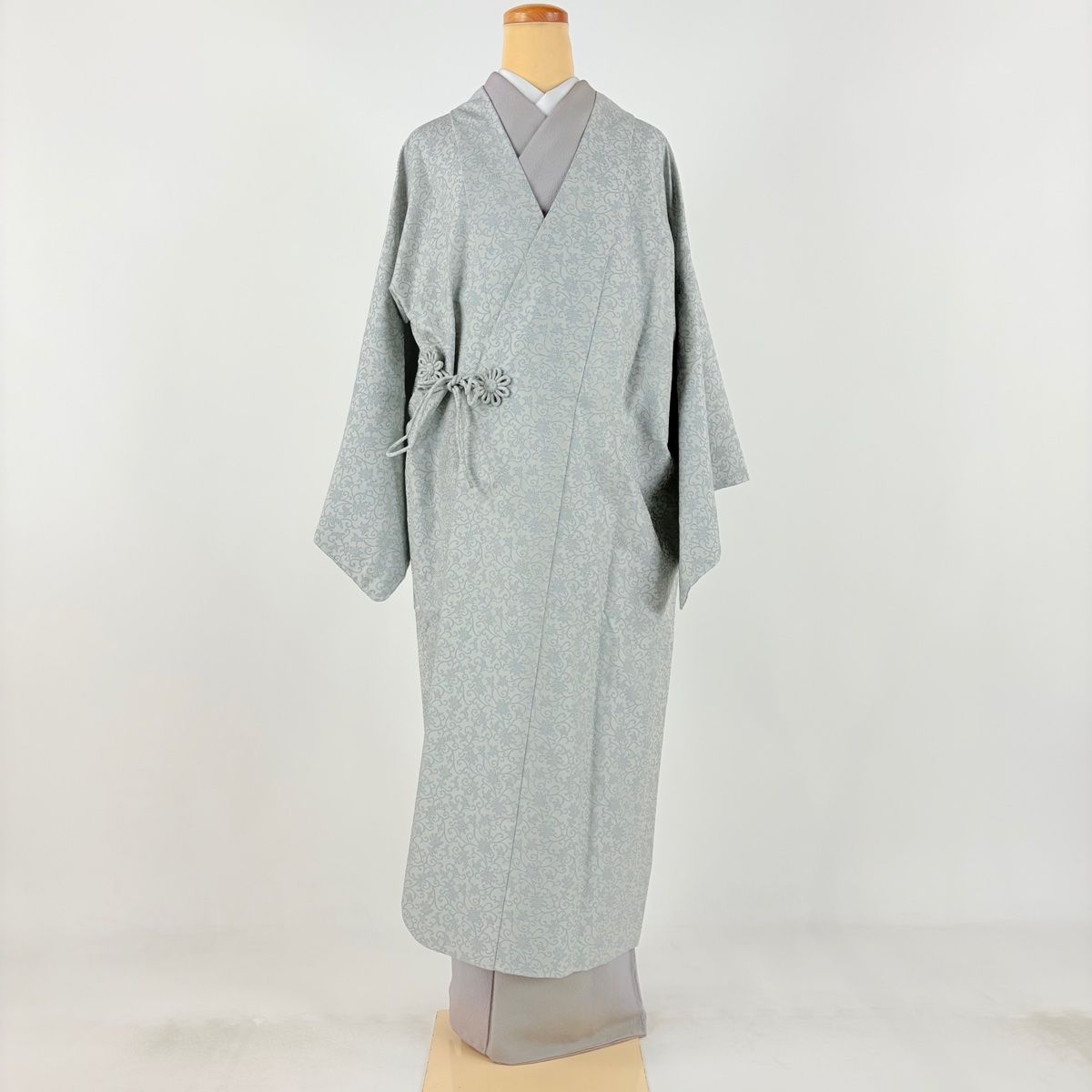道中着 身丈120.5 cm 裄丈68 L 龍村美術織物監修 和装コート 落款 照華透彫文 青灰色 正絹
