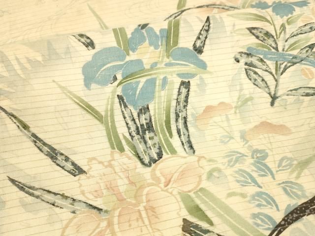 平和屋着物 夏物 アンティーク 大正ロマン 丸帯 草花文 銀彩 正絹 cm