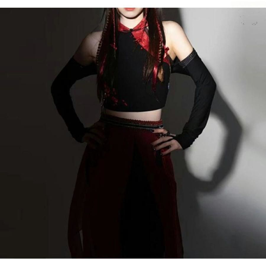 4タイプ k-pop 衣装 中華風 ダンス衣装 レディース 大人 セットアップ 黒 へそ出し ワインレッド ワイドパンツ チャイナ服 ヒップ