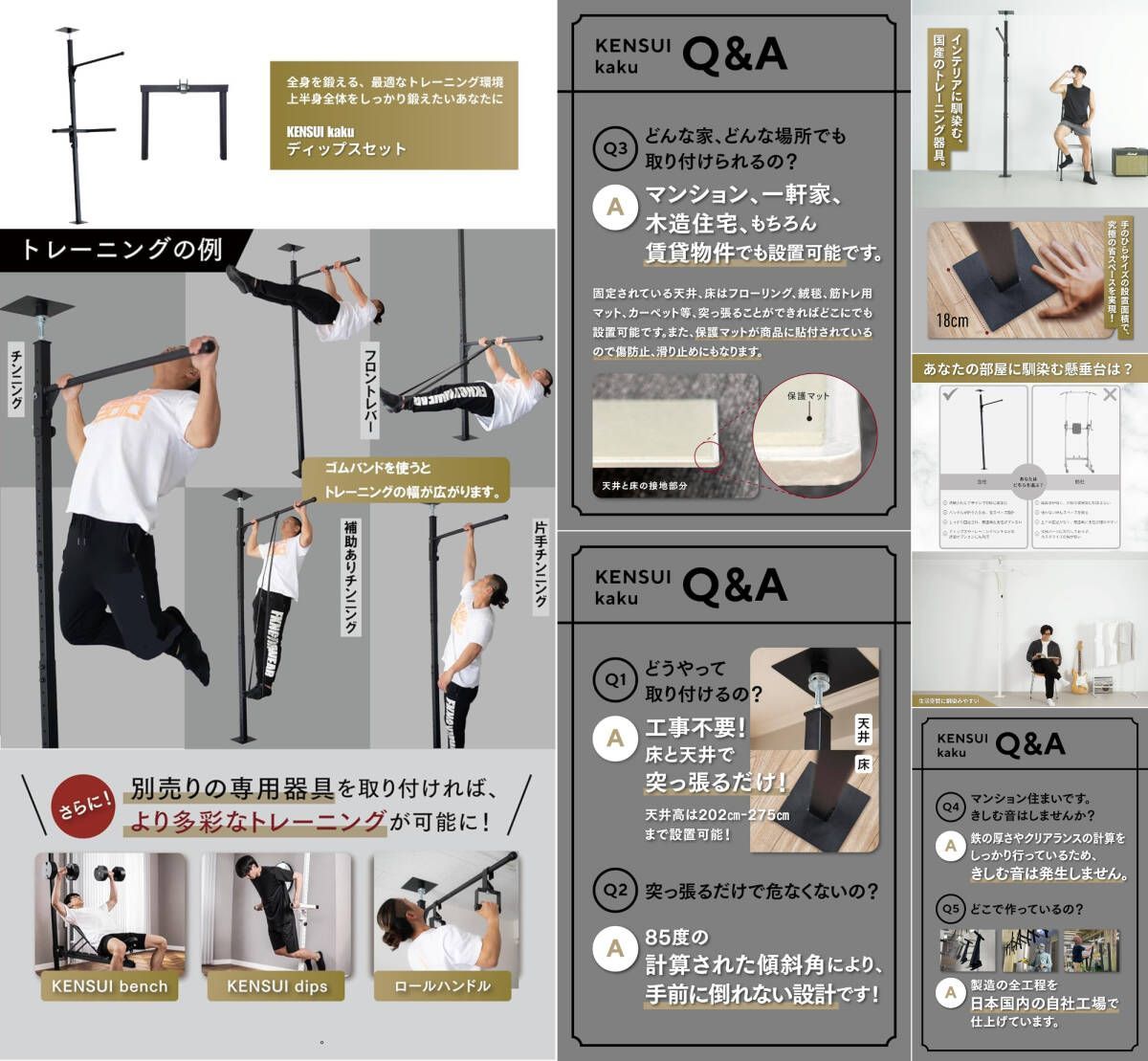 懸垂マシン ディップスハンドル付 TEDDY WORKS KENSUI kaku model 3 チンニングスタンド 天井 折畳み 耐荷重130 kg 懸垂バー 引取OK