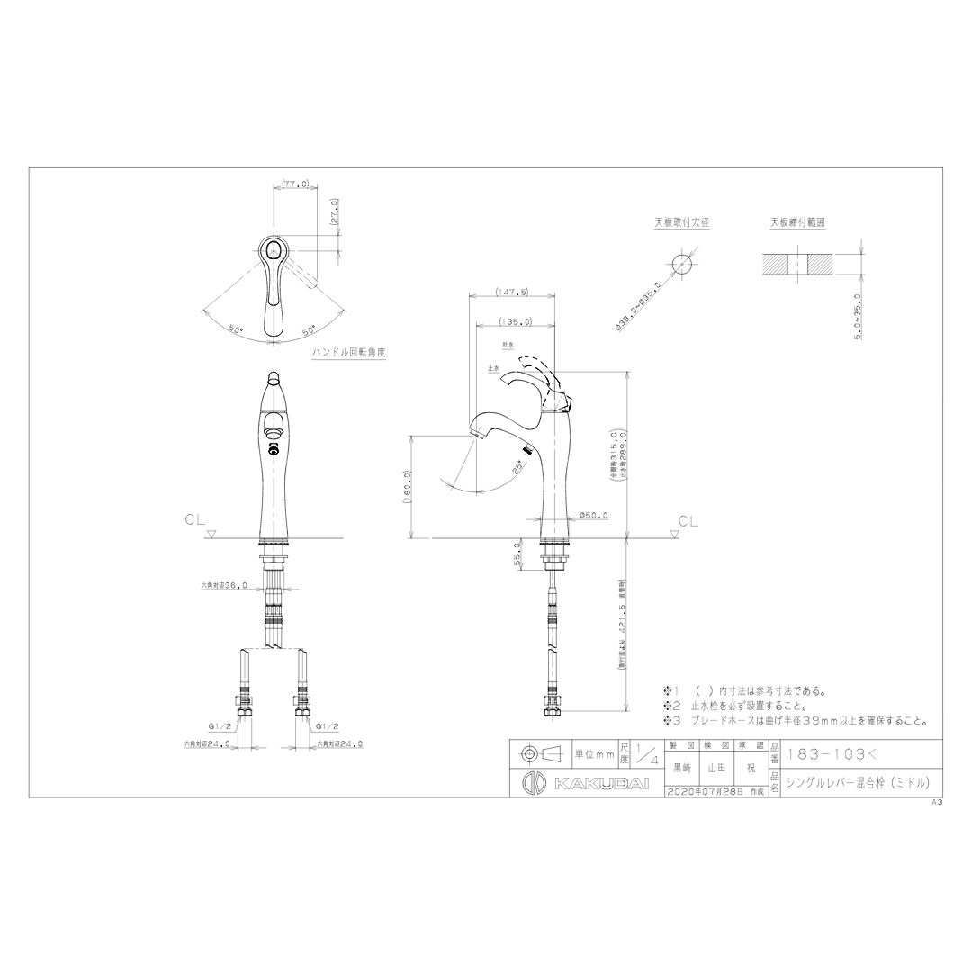 KAKUDAI 洗面 シングルレバー混合栓 ミドル _ 183-103 K