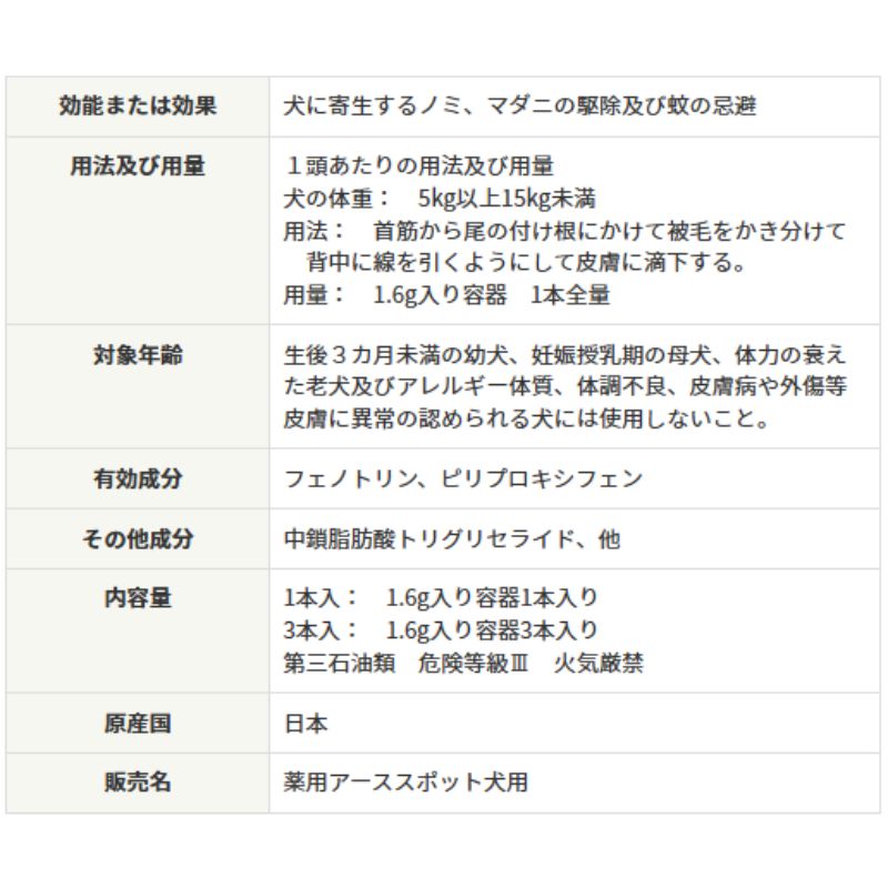 用法:首筋から尾の付け根にかけて被毛をかき分けて背中に線を引くようにして皮膚に滴下する。