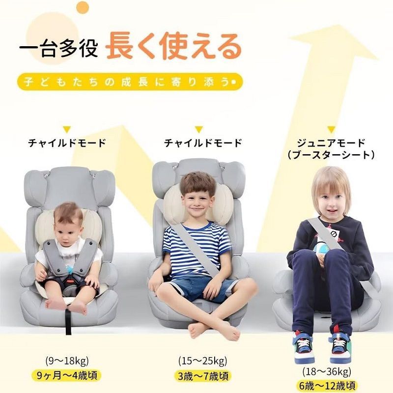 お子様の成長に合わせてヘッドレストの高さ・肩ベルトの調節ができ、成長に合わせた位置で頭をサポート。取り外し可能の背もたれ、長い間お使いいただけます。【取り付け簡単】3点式のシートベルトでの取り付けも可能となっております。ベルトガイド付きで装着時にシートベルトを通す位置がわかりやすい。