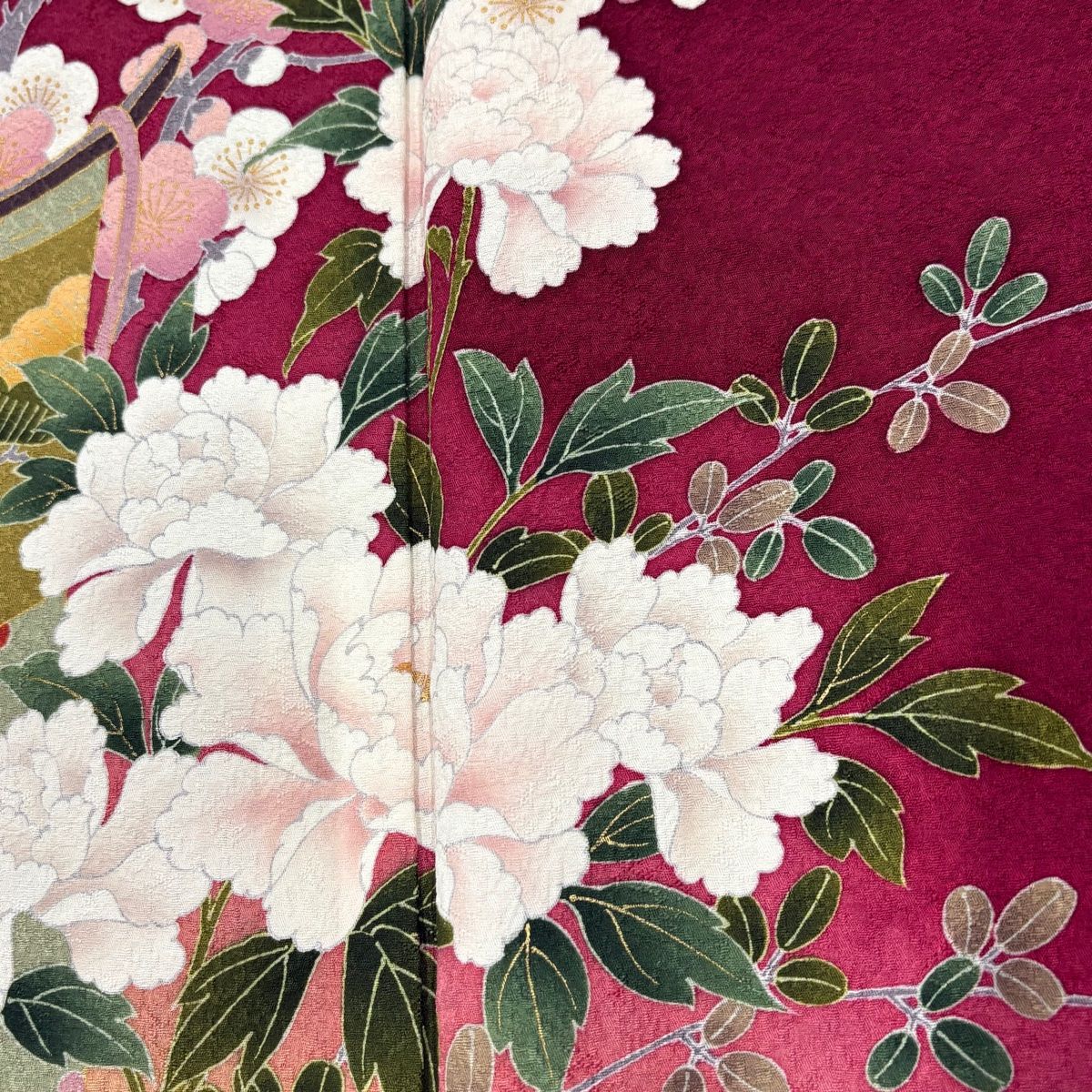 振袖 身丈165 cm 裄丈68.5 L 袷 几帳 牡丹 金彩 赤紫 正絹 秀品