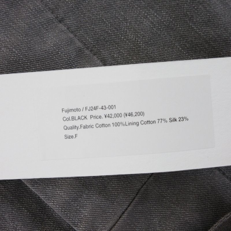 未使用 Fujimoto フジモト OVERDYED WRAP VEST FJ24F-43-001 製品染め ベスト カットオフ 日本製 ブラック 黒 F タグ付き