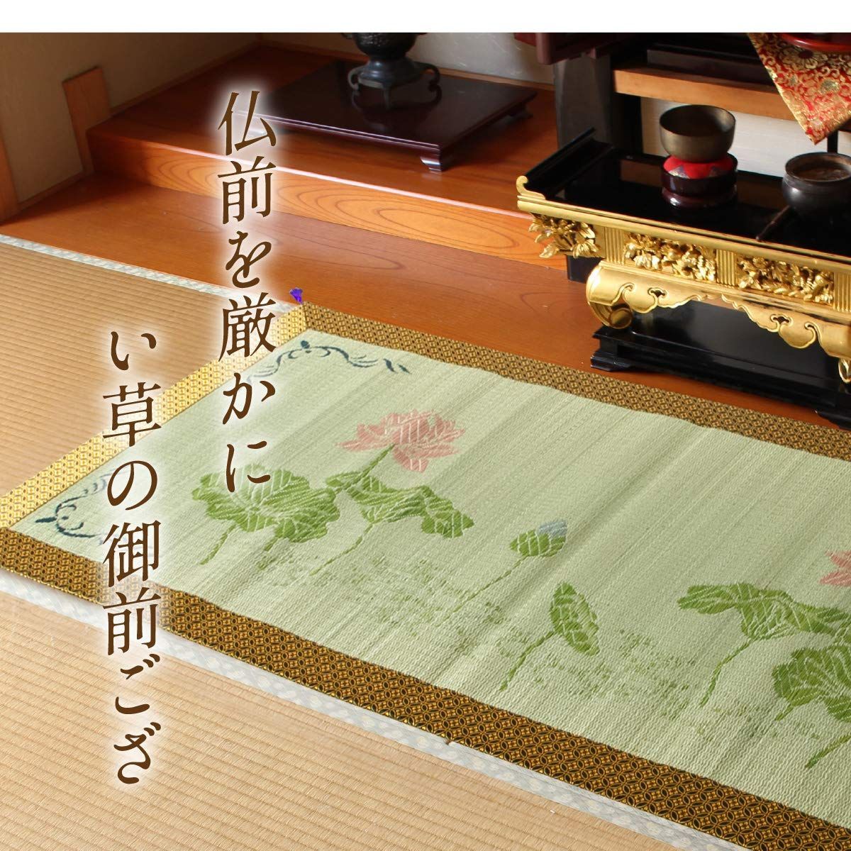 イケヒコ い草 御前 仏前 ござ 国産 袋織 蓮の花 約88×180cm #3109769
