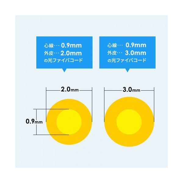 ●0.9mm心線、2.0mm外被・3.0mm外被のファイバコードに対応することが可能です。