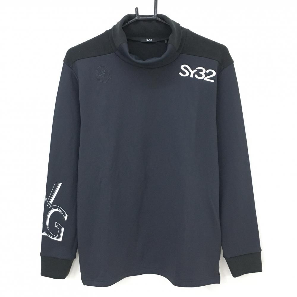 SY 32 長袖ハイネックシャツ 黒×白 ネック一部フリース 裏起毛 メンズ XL ゴルフウェア モデル BY SWEET YEARS