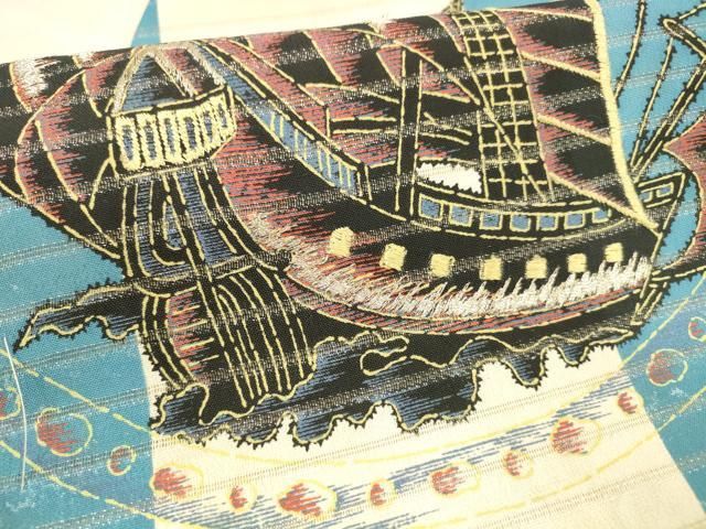 平和屋着物 夏物 アンティーク 大正ロマン 九寸名古屋帯 花舟文 銀糸 正絹 cm