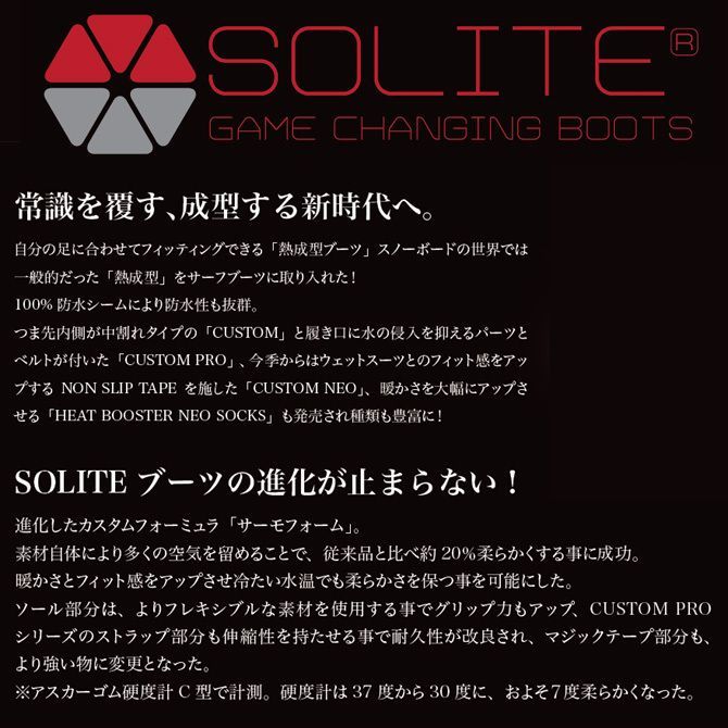 自分の足に合わせてフィッティングできる「熱成型ブーツ」スノーボードの世界では一般的だった「熱成型」をサーフブーツに取り入れた!100% 防水シームにより防水性も抜群。
