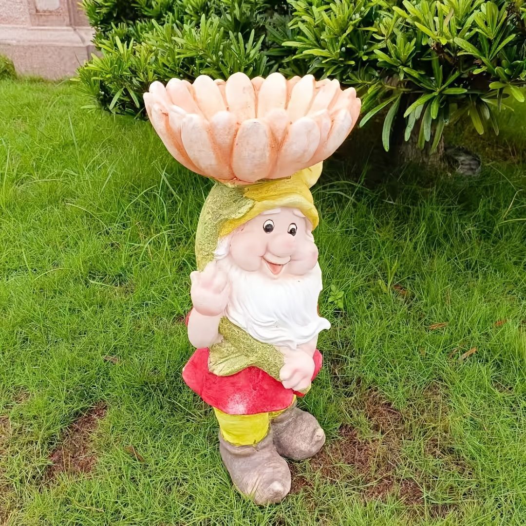バードフィーダー 小鳥 野鳥 用 給餌器 餌箱 餌台えさ置き 置物 花を持っている小人 餌入れ 鳥 ガーデンオブジェ インテリア ガーデ
