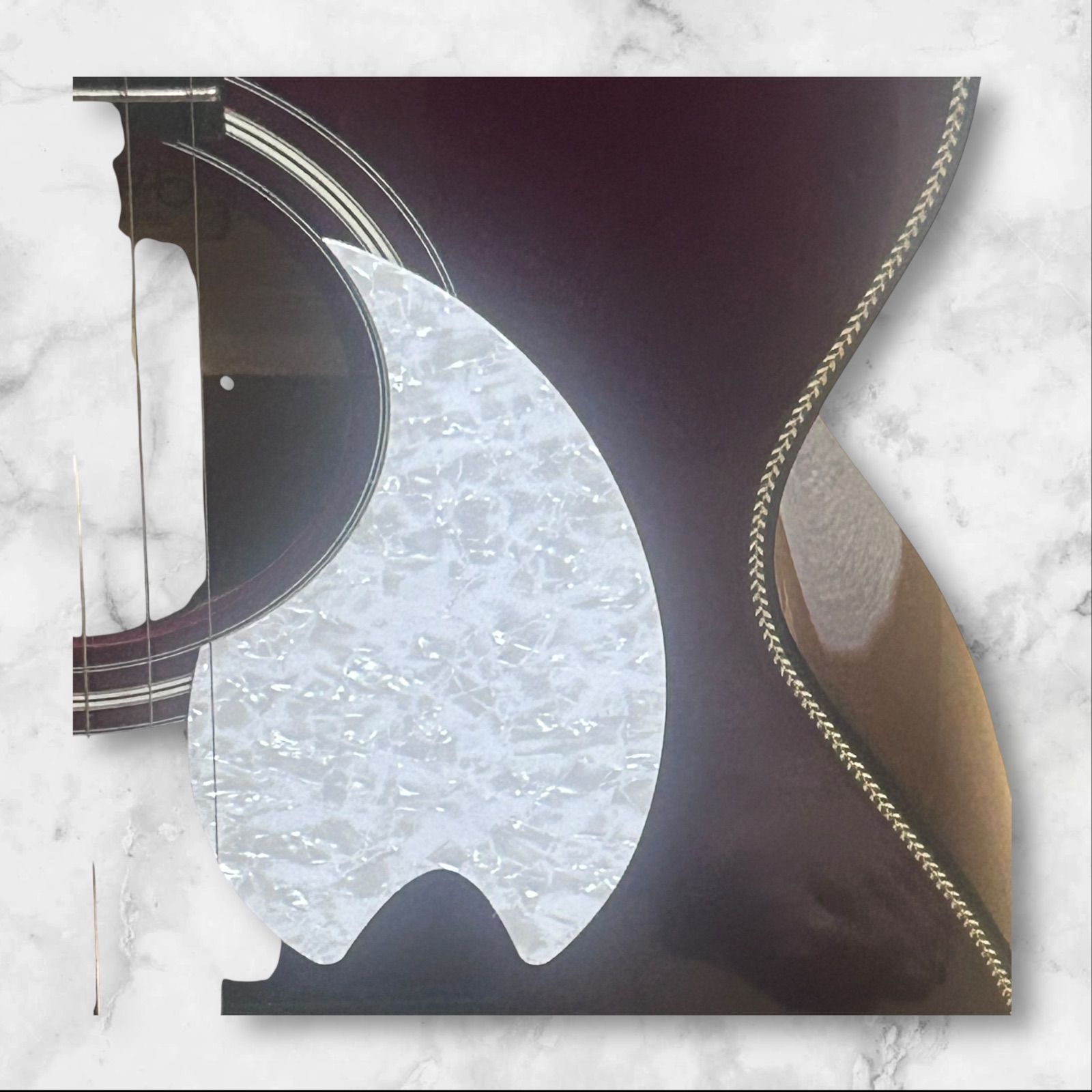ブラウン・グラデーションのスモールボディアコースティックギター、桜のインレイが特徴。