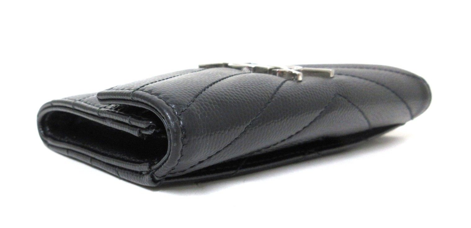YSL サンローラン パリ VスティッチYSLロゴレザーカードケース 414404 ブラック シルバー カードケース 小銭入れ