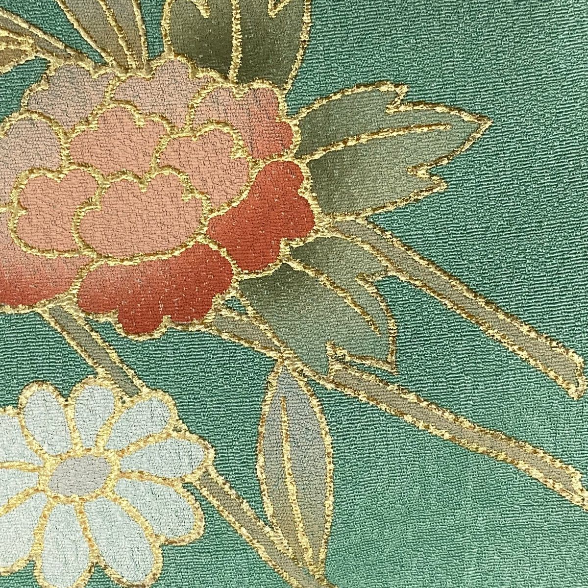 訪問着 身丈164.5 cm 裄丈66.5 M 袷 草花 梅 金彩 刺繍 薄緑 正絹 秀品