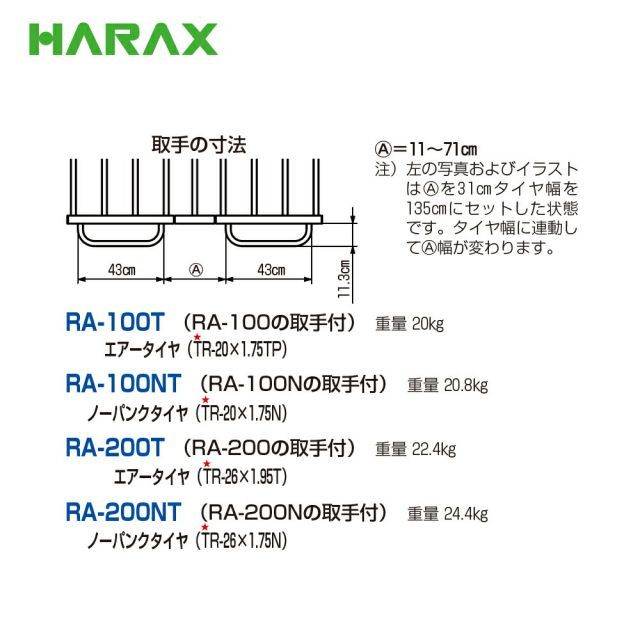 ハラックス HARAX 取手付き アルミ製収穫台車 楽太郎 エアータイヤ RA 200 T