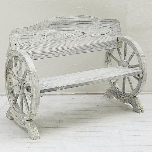 車輪をモチーフにしたカントリーな雰囲気たっぷりの2人掛けベンチです。
